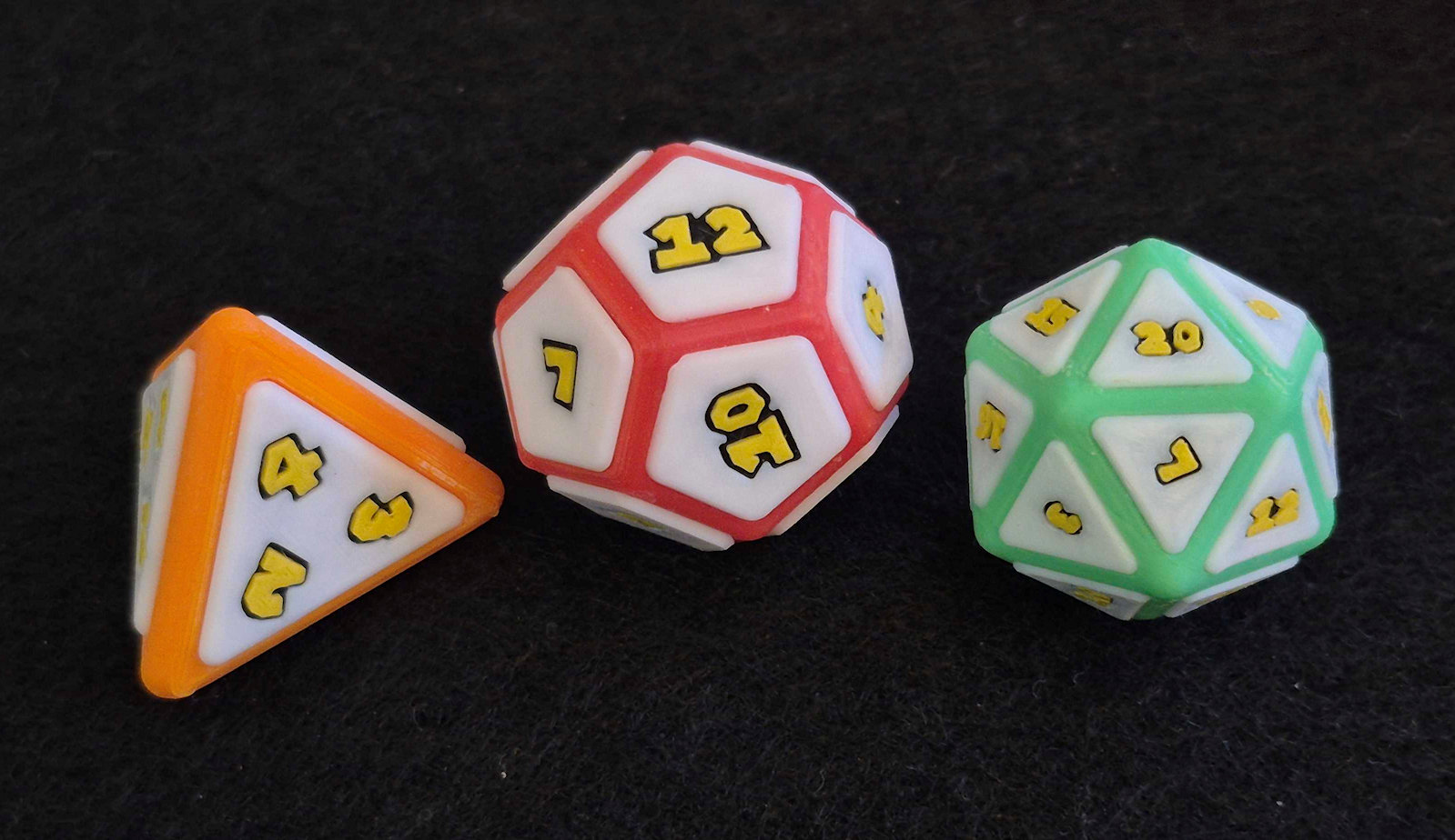 3 Dice Novelty Set – 3D Printed Classic Mario Party Collection (D4, D12, D20) ($25)