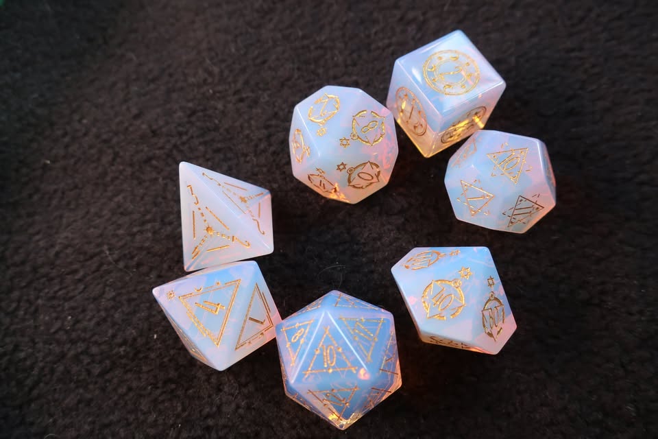 This was the first dice set I ever bought, and I loved the look of them, but then I started getting gemstone dice and ended up using those instead. For cheaper resin dice, these have a nice simple look and feel good in the hands. Ideal for warlocks.