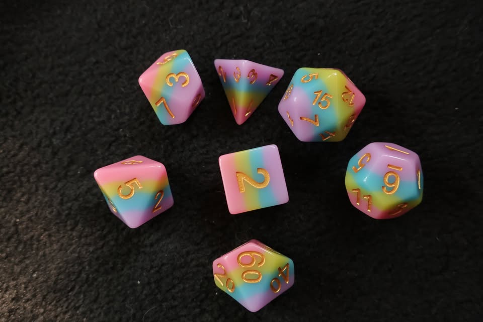 7 Dice Set – Resin Rainbow Pastel ($15)